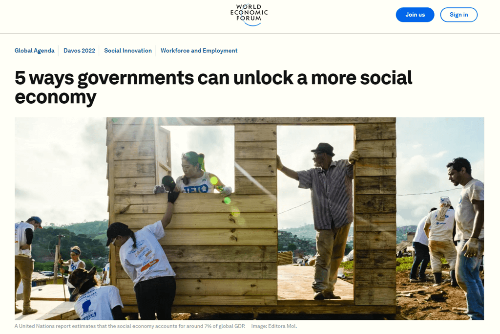 A new report, Unlocking the Social Economy, from the World Economic Forum, provides five key policy recommendations to advance the sector.