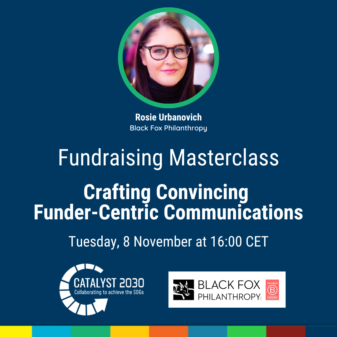 This is the first session in Catalyst 2030’s new Fundraising Masterclass series, a series of bi-monthly sessions to boost your fundraising. In this session, Black Fox Philanthropy Founder and CEO Natalie Rekstad facilitated conversation between esteemed panelists Dana François (W.K. Kellogg Foundation), Catherine Olteanu (Black Fox Philanthropy) and Akosua Ampofo Siever (Root Capital).