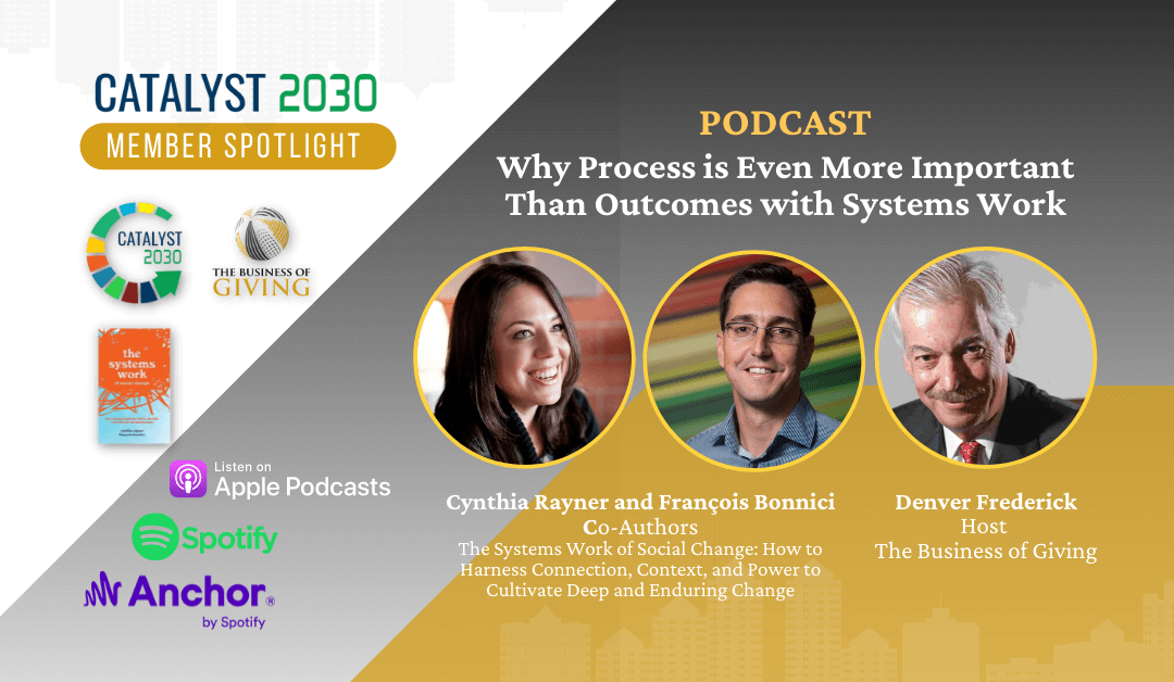 Denver Frederick is the host of The Business of Giving, a podcast that focuses on solutions to today’s complex social problems, and the people who are bringing about systems change through their work. He regularly has deep and insightful conversations with Catalyst 2030 members.
